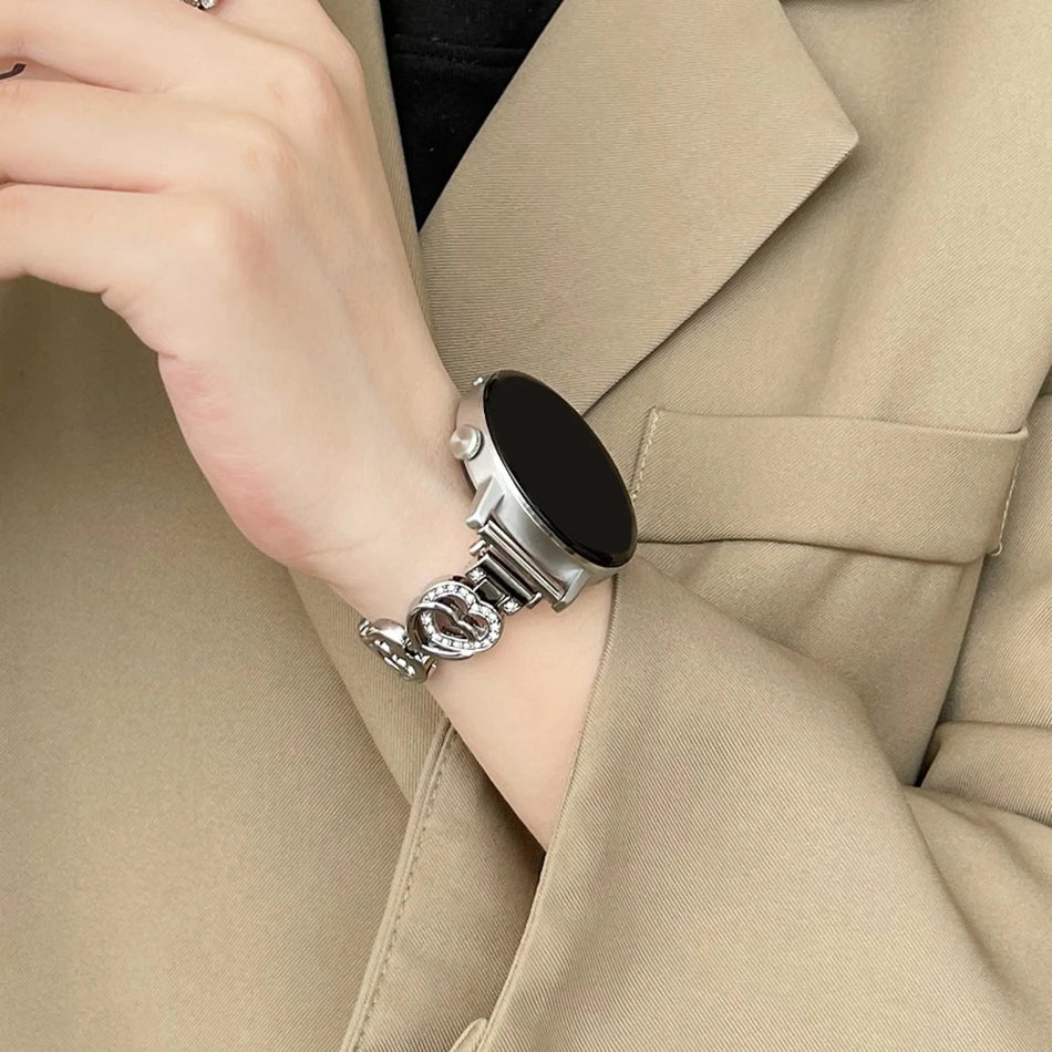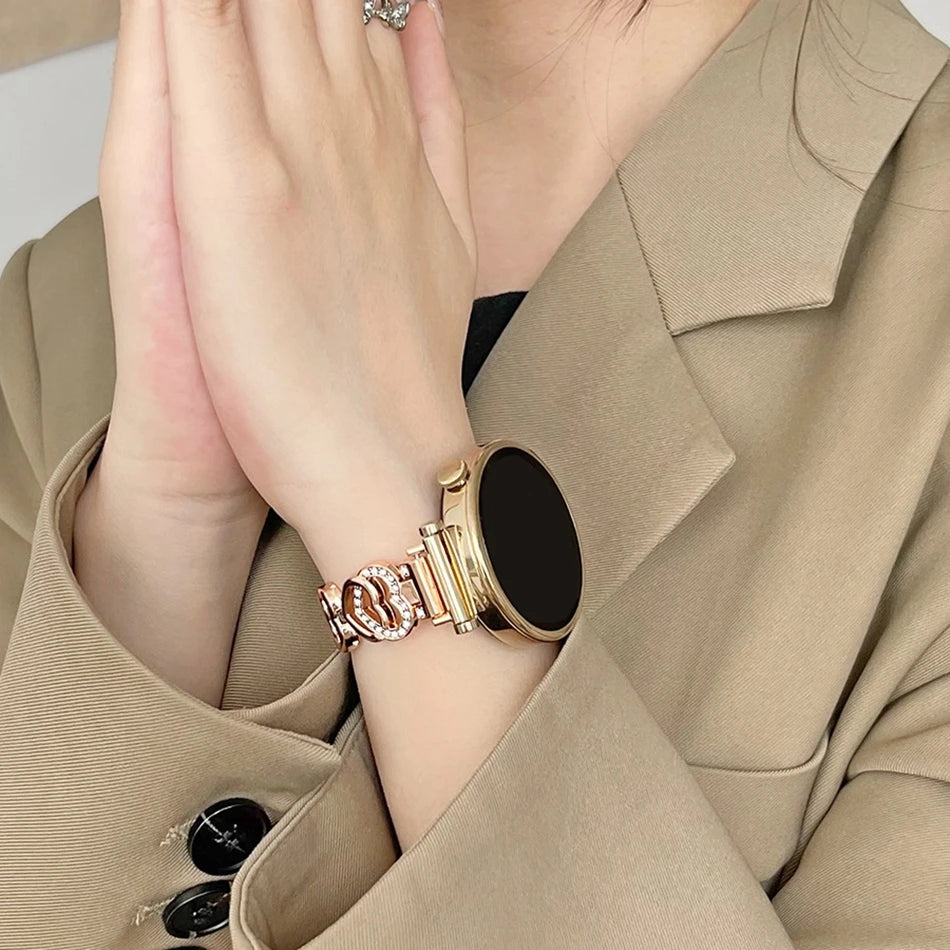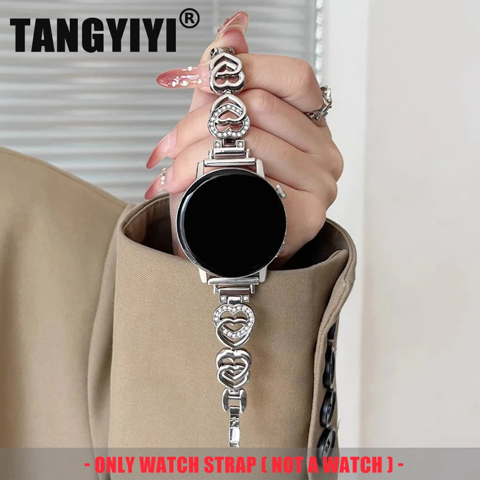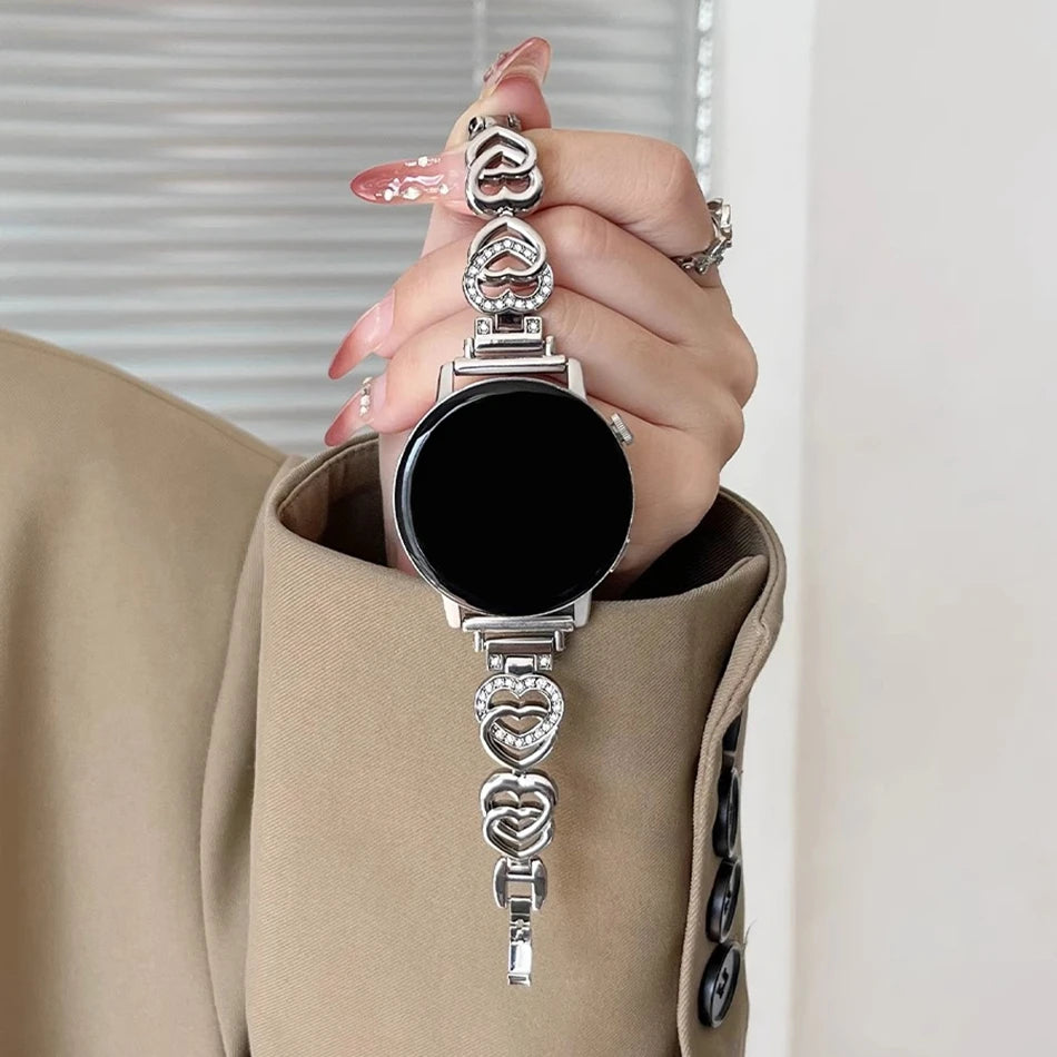 Band For Samsung Galaxy Watch 5/4 6 Classic 5 Pro Fashion Dual Heart Metal Bracelet Strap For Amazfit Bip/GTS Huawei GT2