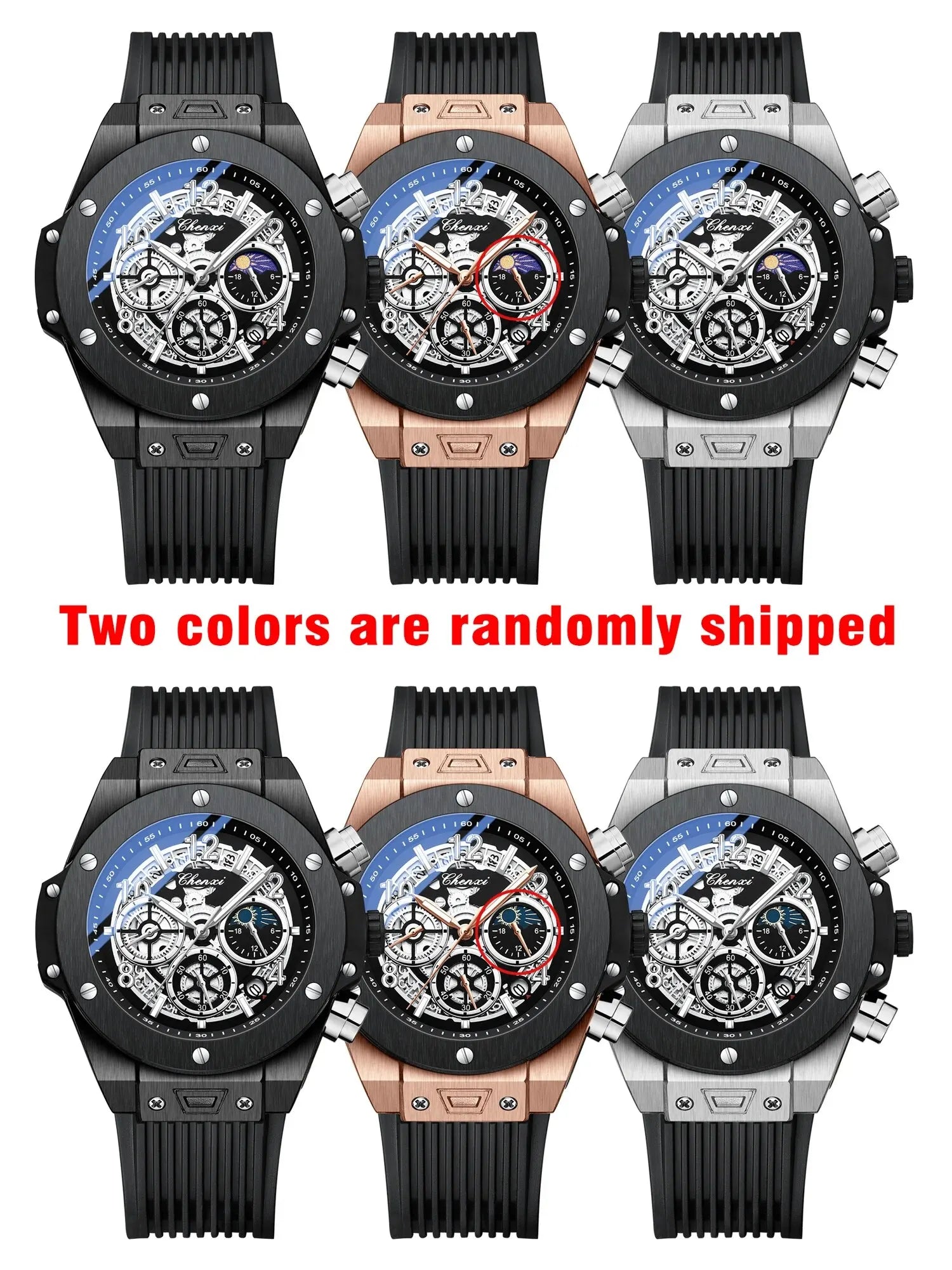 CHENXI Fashion Silicone Chronograph Watch Men Multifunctional Cool Luminous Quartz Starry Lunar Phases Timing Sport Wristwatches