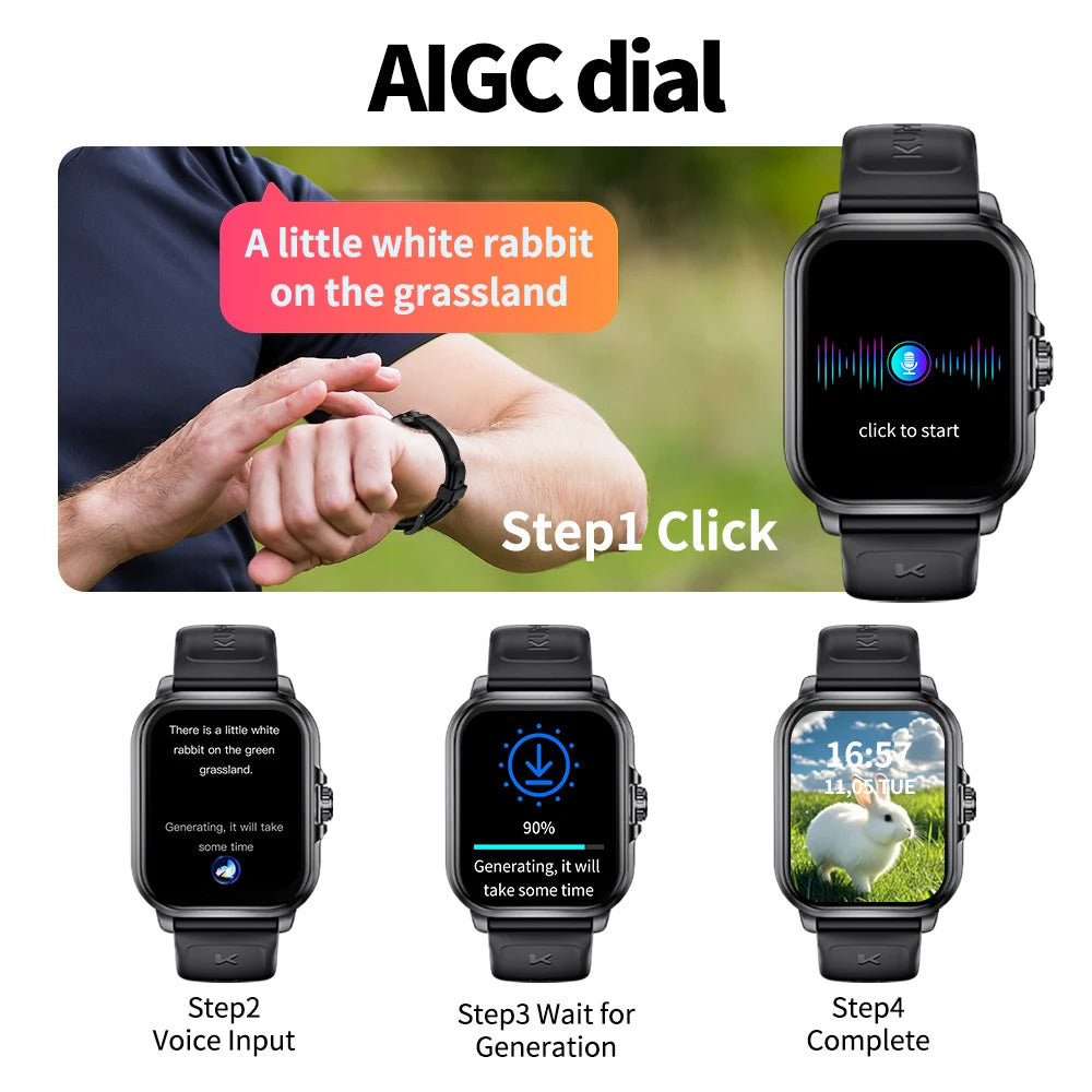 KUMI KU7 Meta 2.01″ High-definition Screen Smart Watch Bluetooth Call Heart Rate Measurement Oximetry Offline Intelligent Voice