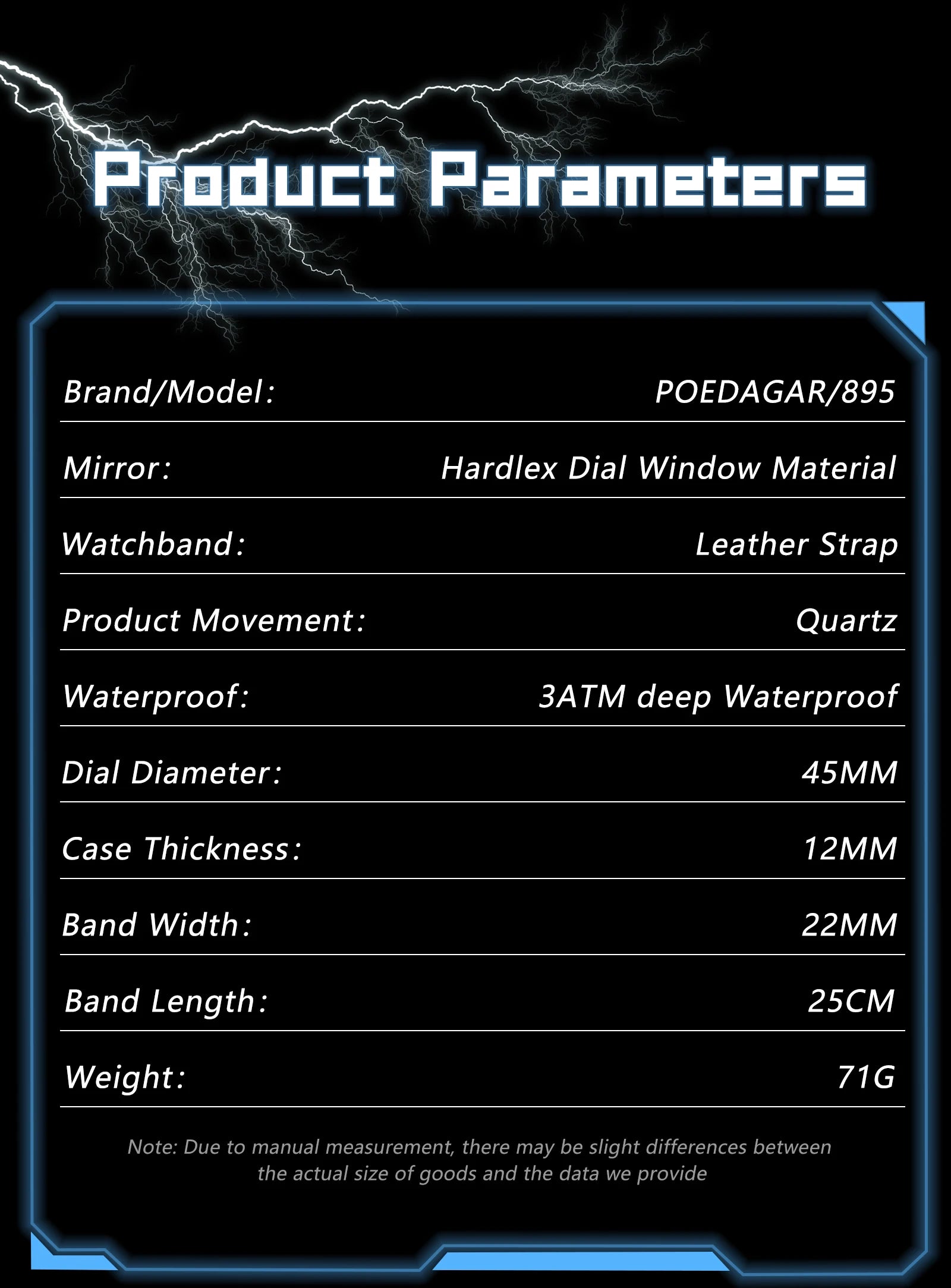POEDAGAR Original Man Wristwatch Top Luxury Waterproof Luminous Date Week Watch For Men Quartz Sport Leather Men's Watches Reloj