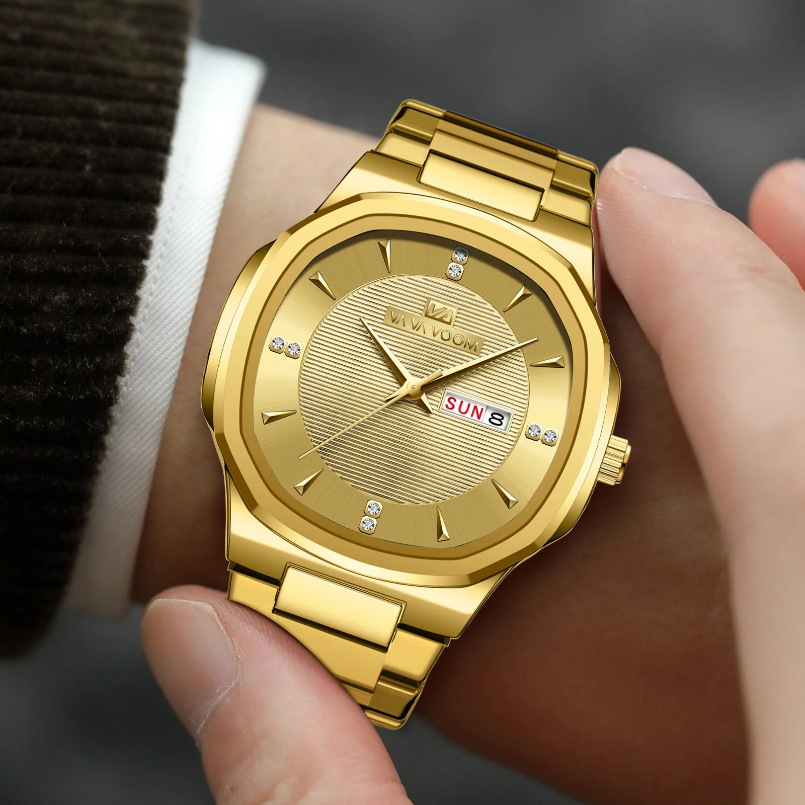 VA VA VOOM Men Watch Fashion Silver Black Stainless Steel 41mm Casual Business Style Week 3Bar Waterproof Sports Quartz Watches