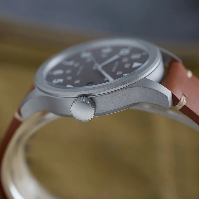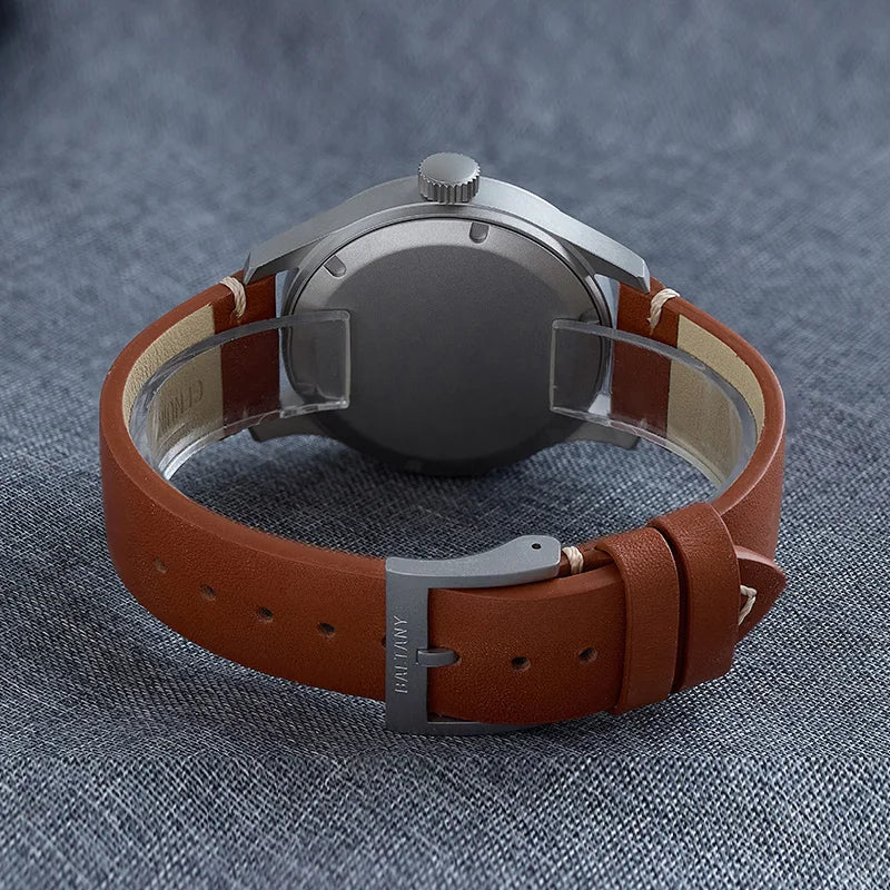 Baltany Men Quartz Field Watch S2082 10-Year Life Battery Luminous Leather Sapphire Stainless Steel Date Retro Military Watches