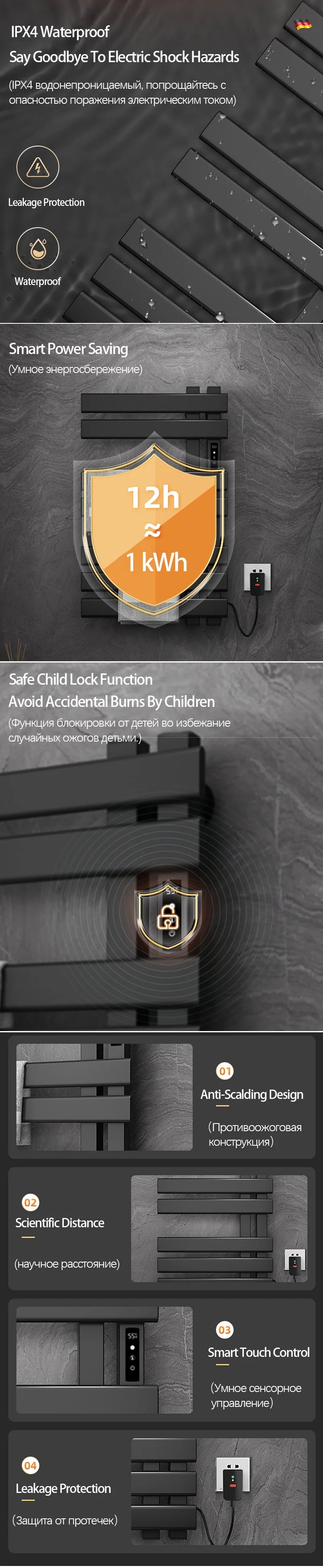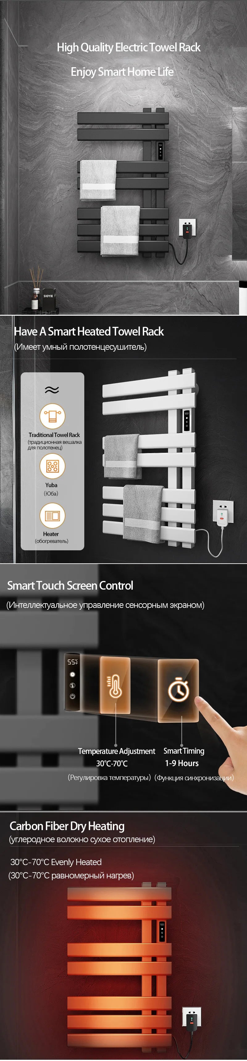 Bathroom Towel Radiator Electric Towel Rail Smart Touch Thermostatic Electric Heating Towel Rack 220V Energy Saving Towel Warmer
