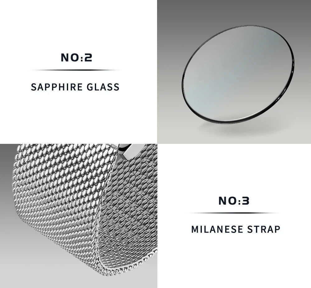 CADISEN Automatic Watch Men Luminous Stainless Steel Self-Wind Wristwatch NH35A Sapphire Waterproof Mesh Belt Mechanical Watch