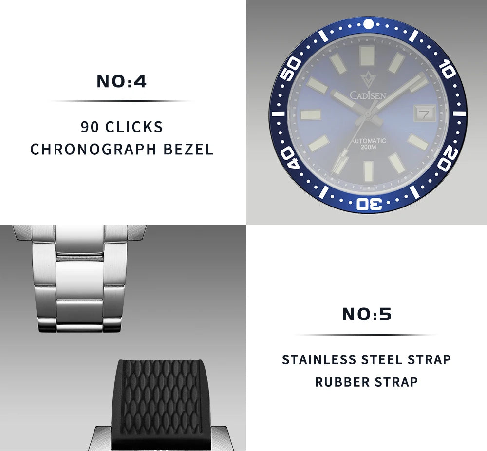 CADISEN New 38mm Diver Mens Watch Japan NH35A Automatic Mechanical Sapphire Glass Date Luminous 200M Waterproof Wrist watch Men