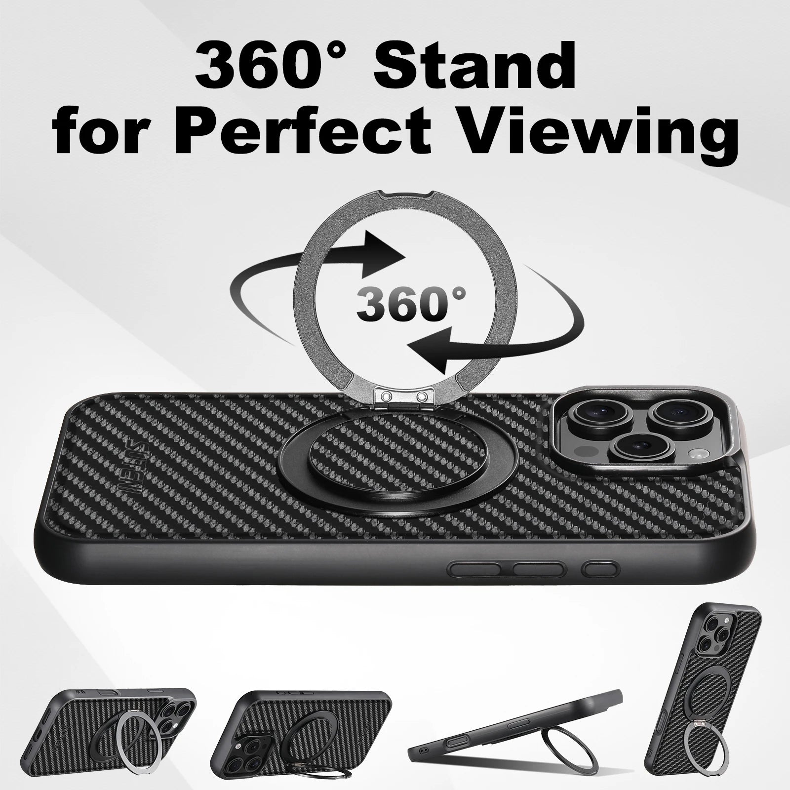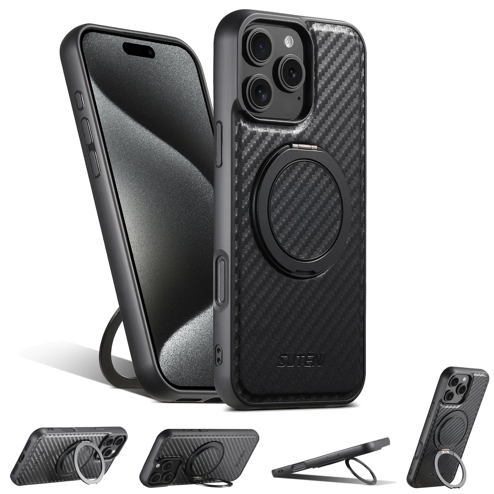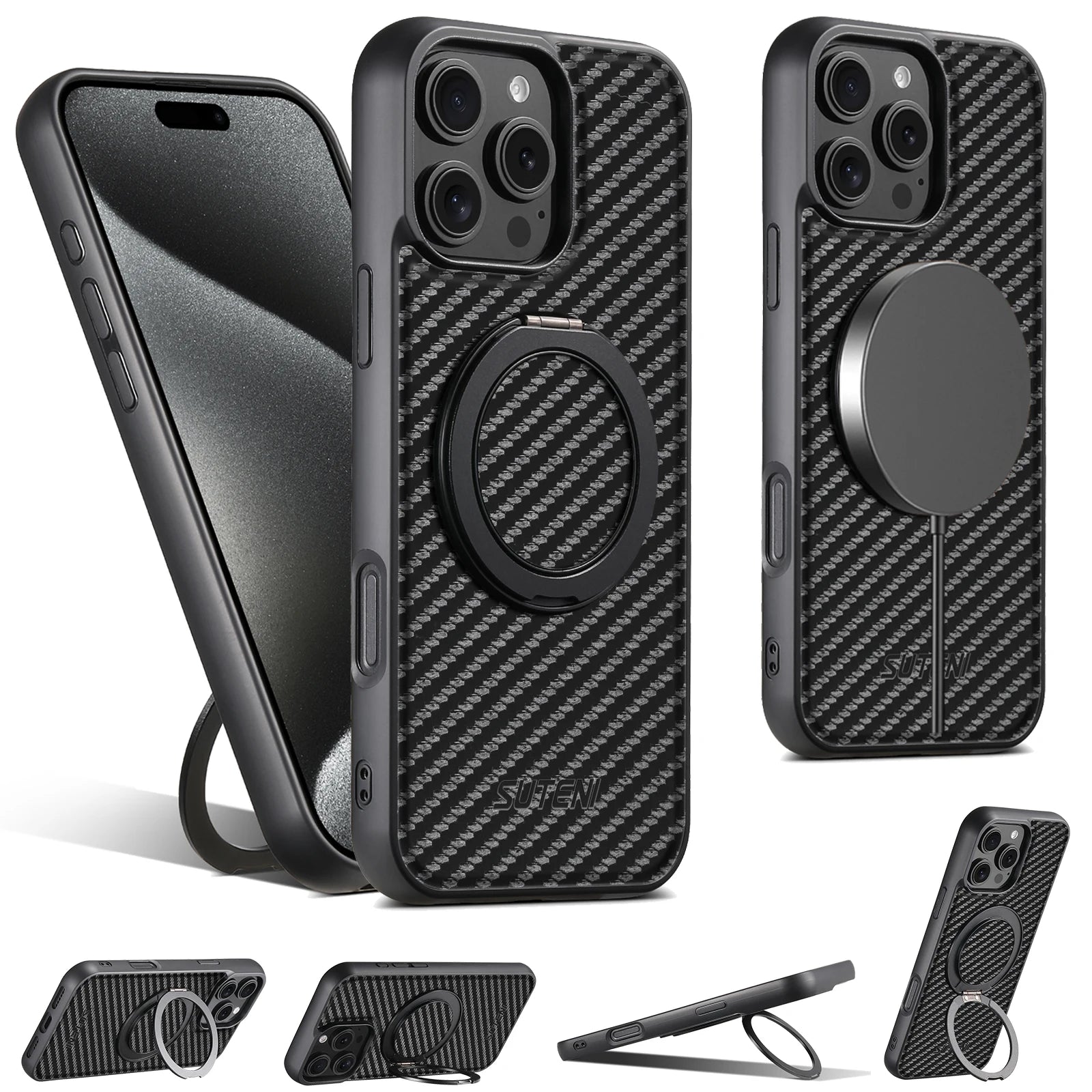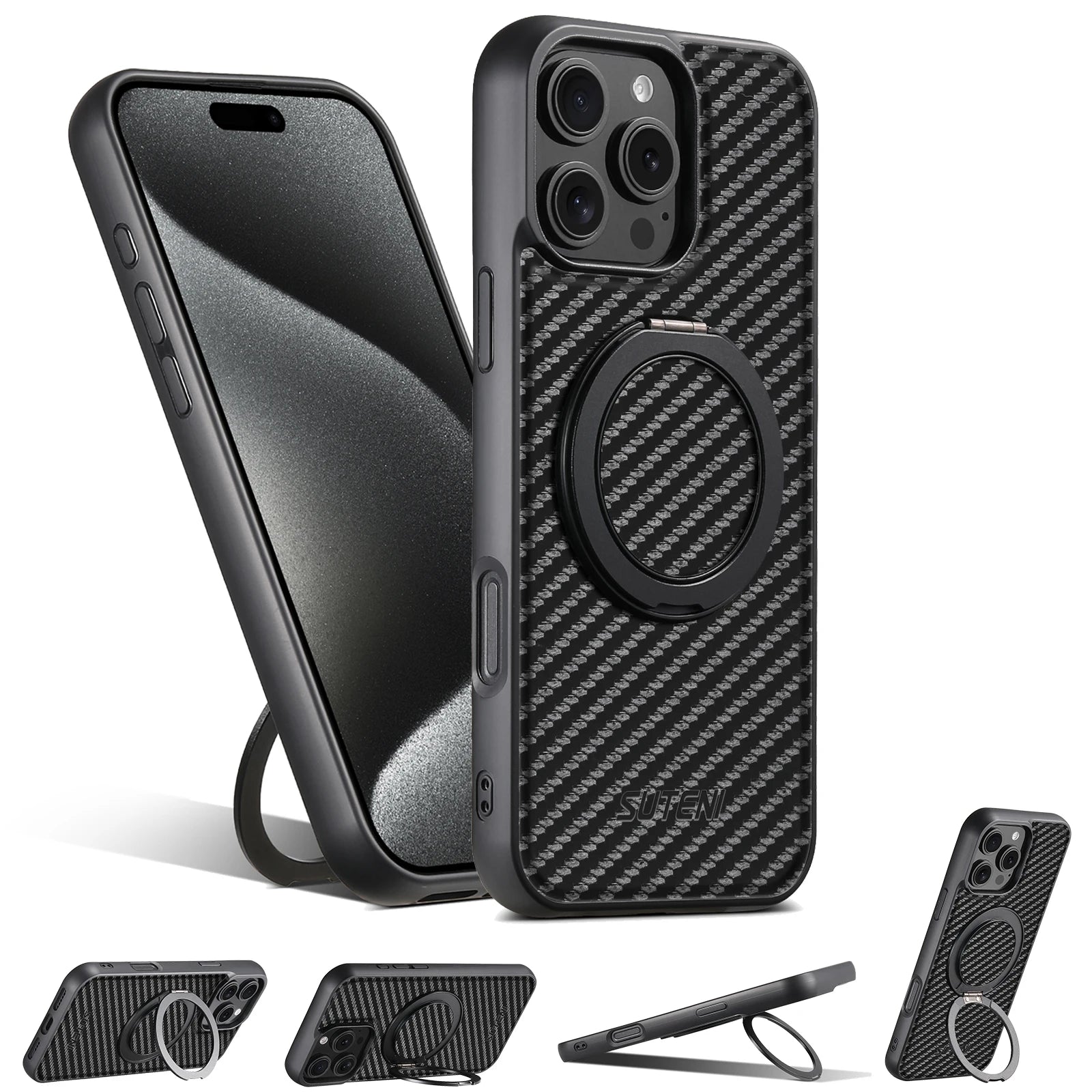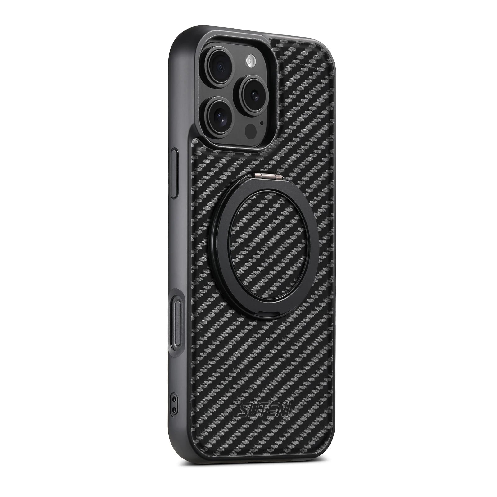 Compatible MagSafe Wireless Charging Strong Magnetic 360° Rotating Ring Stand PU Leather Phone Case For iPhone 17 16 15 14 13 12