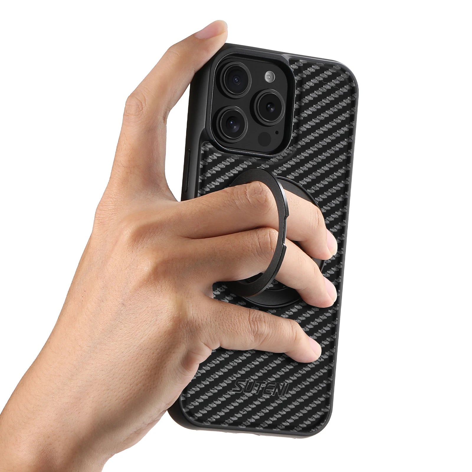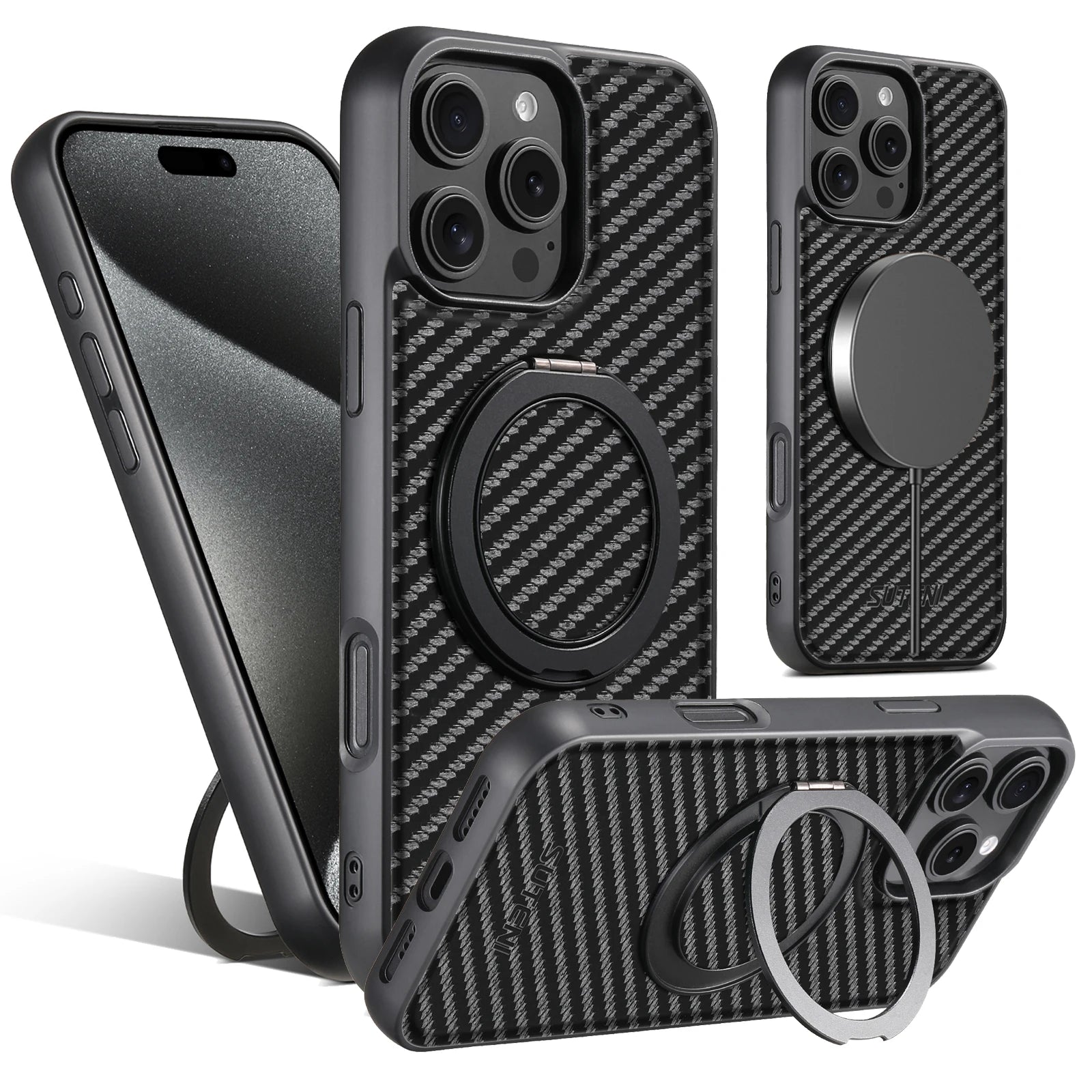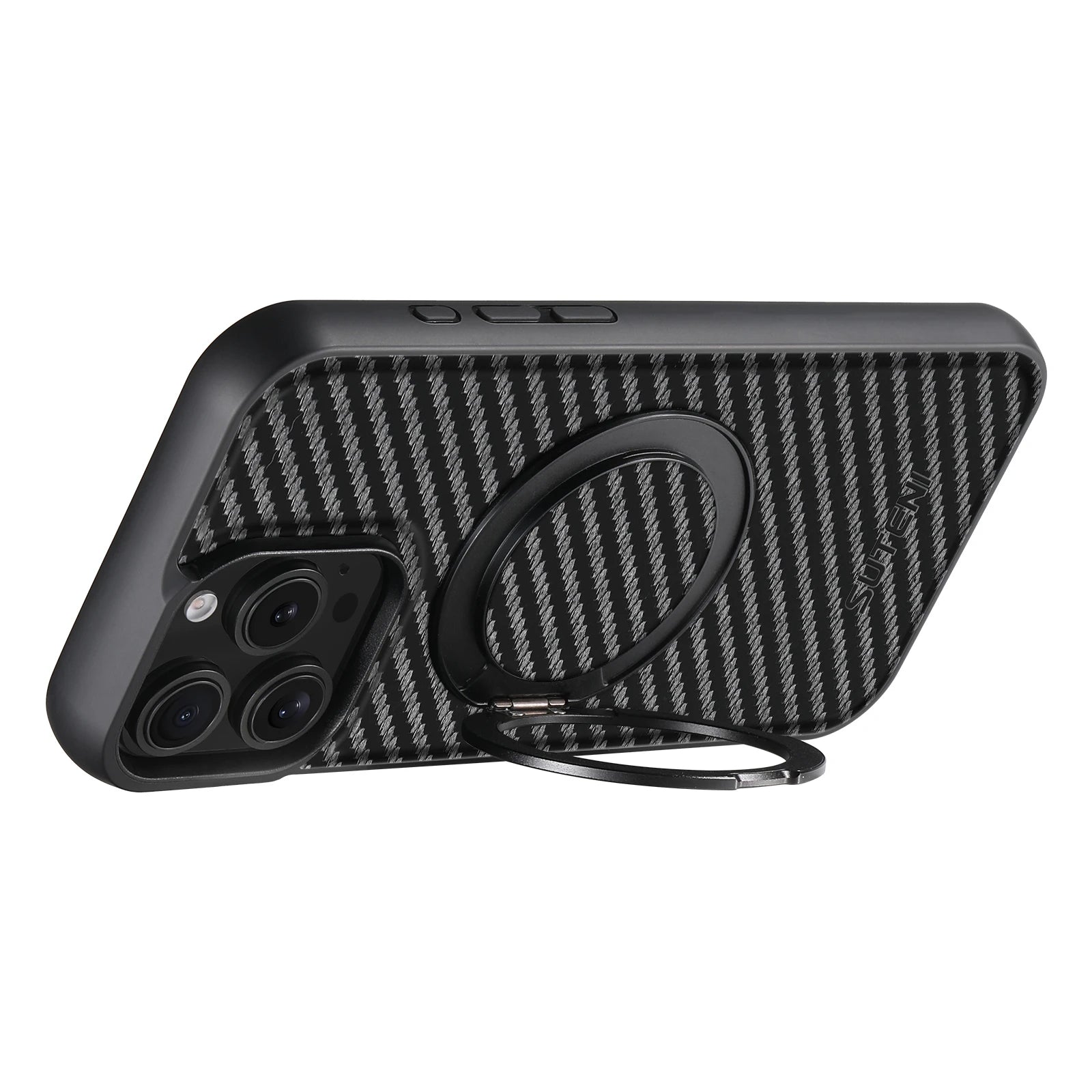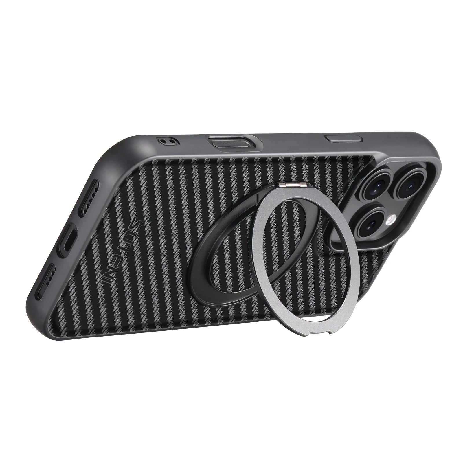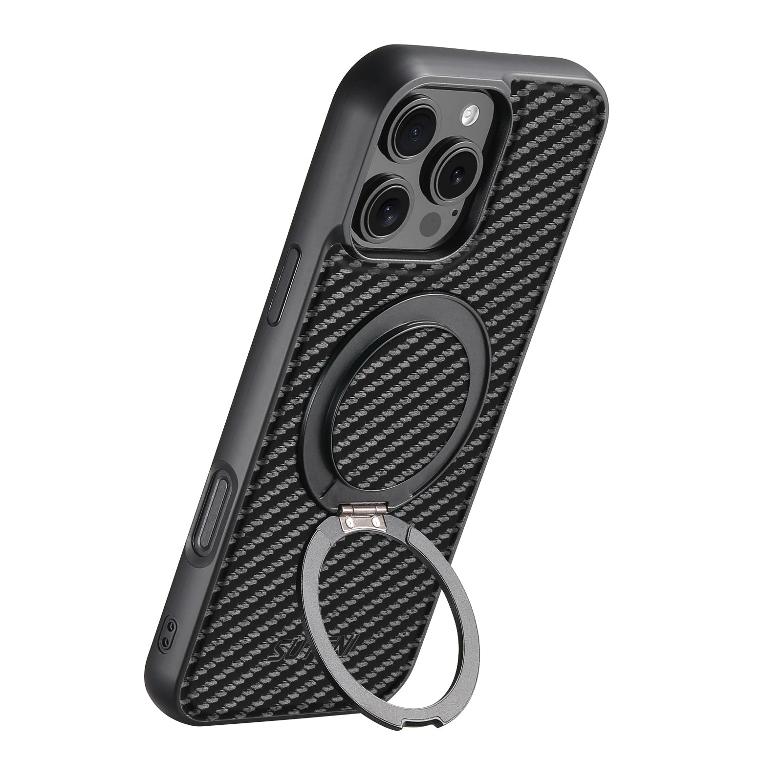 Compatible MagSafe Wireless Charging Strong Magnetic 360° Rotating Ring Stand PU Leather Phone Case For iPhone 17 16 15 14 13 12