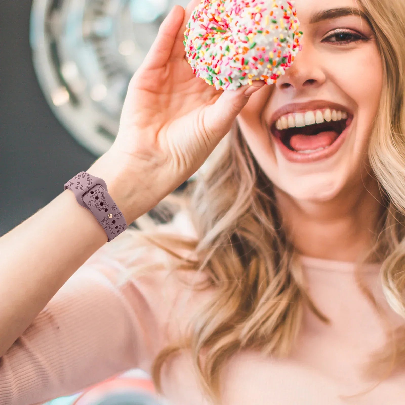 Floral Engraved Band for For Samsung Galaxy Watch 6/5/4/Active 2/5 Pro 45mm 40mm 44mm/Watch 6 4 Classic/Watch 3 41mm Strap