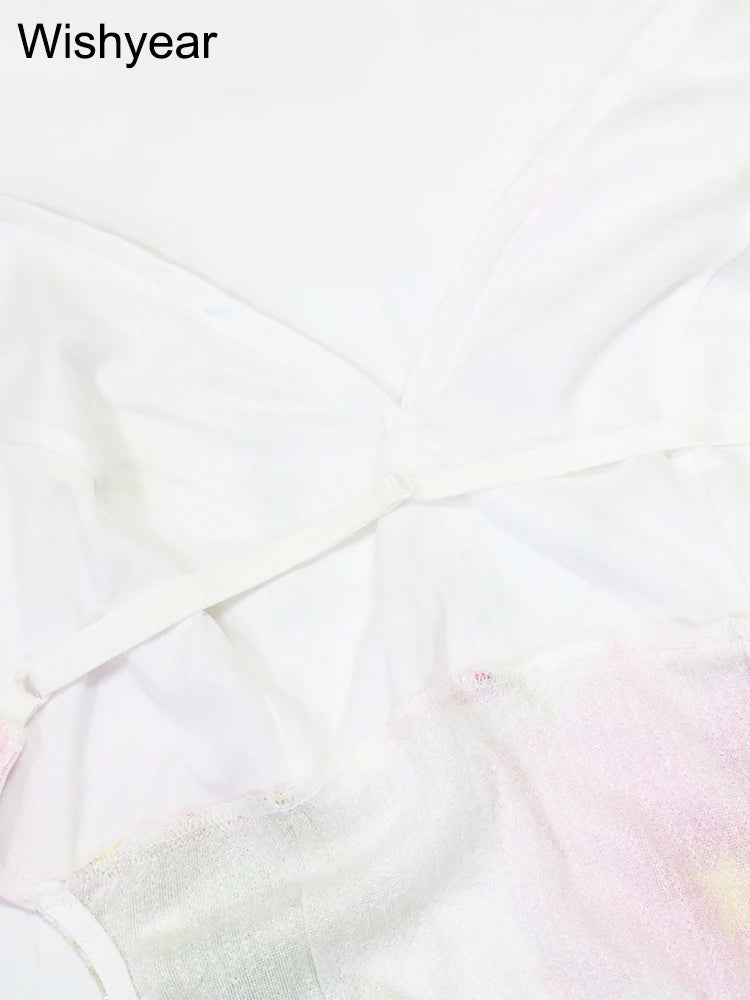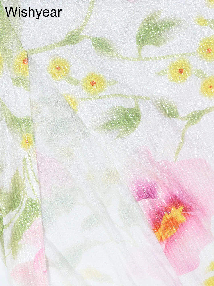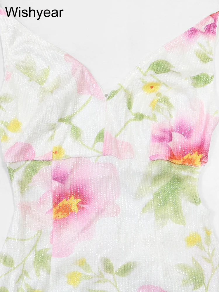 Flower Print Sequins Spaghetti Strap Sleeveless High Slit Long Dress Woman Sexy Vacation Party Birthday Prom Summer Robe