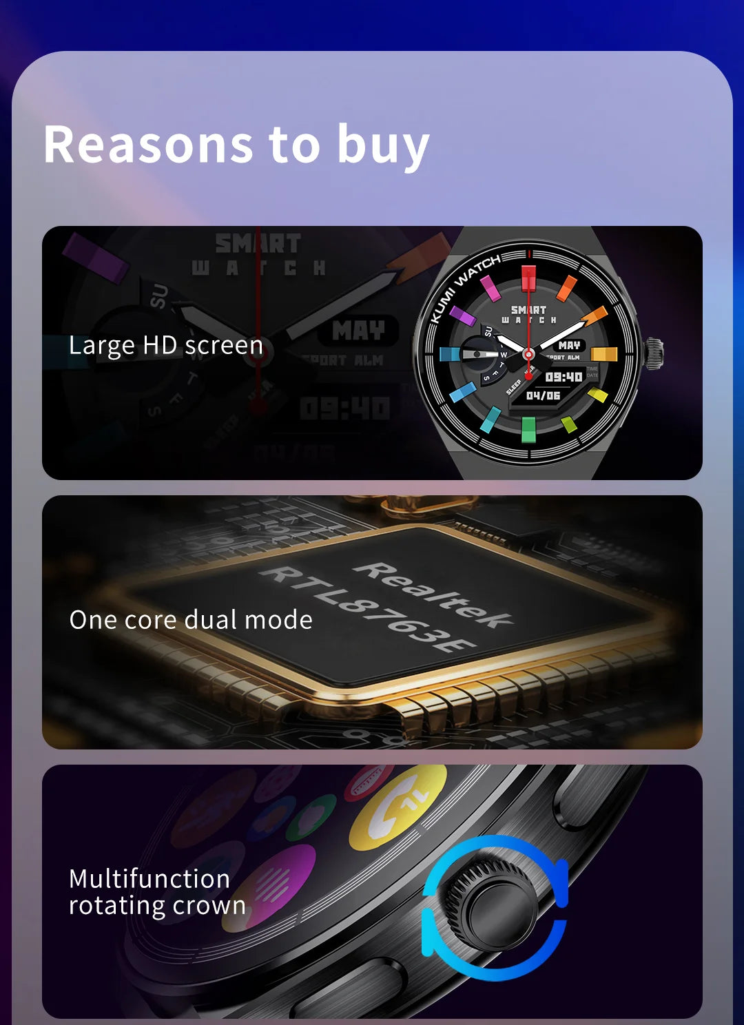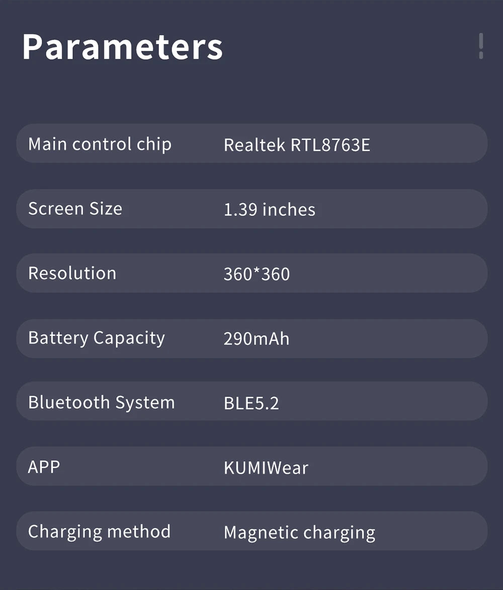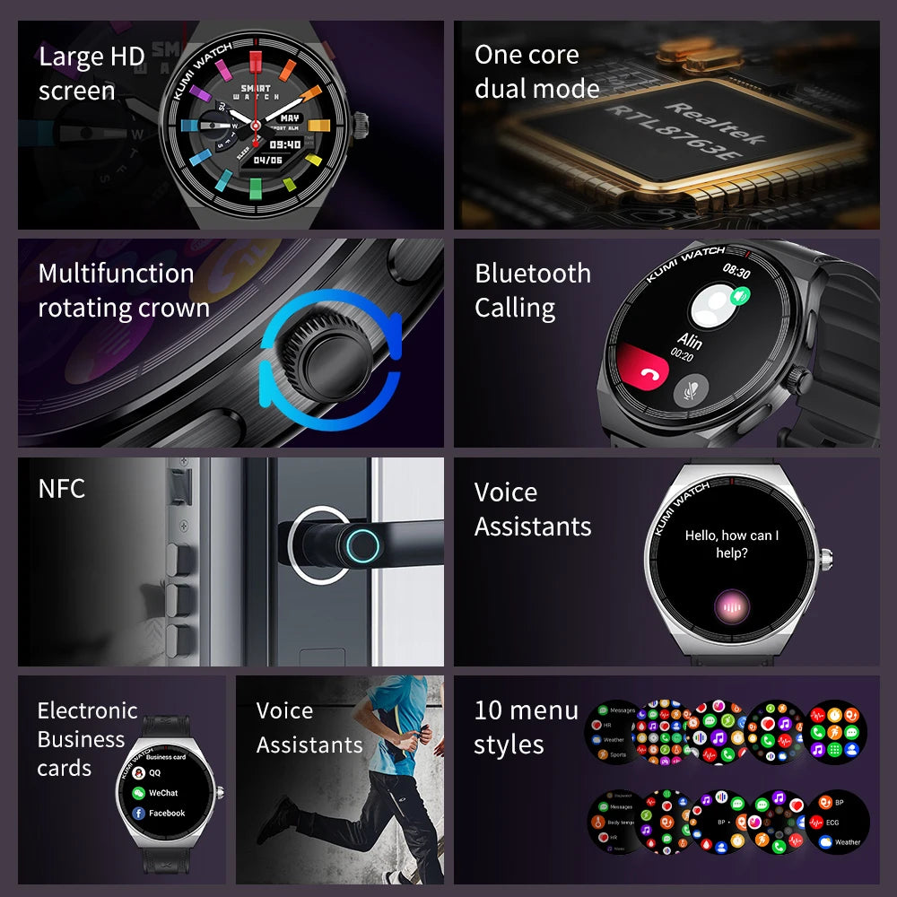 KUMI GT5 Max Smartwatch 1.39inch IPS Full Screen Men Women Bluetooth Call 100+ Sport Heart Rate Tracker IP68Waterproof