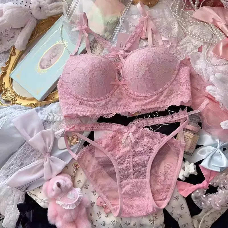 Lingerie Japanese Lace Bra Set, Heart Pendant Purple Lingerie Sexy & Pure Small Chest Push Up Bralette, Fashion Outerwear Design Enhancer