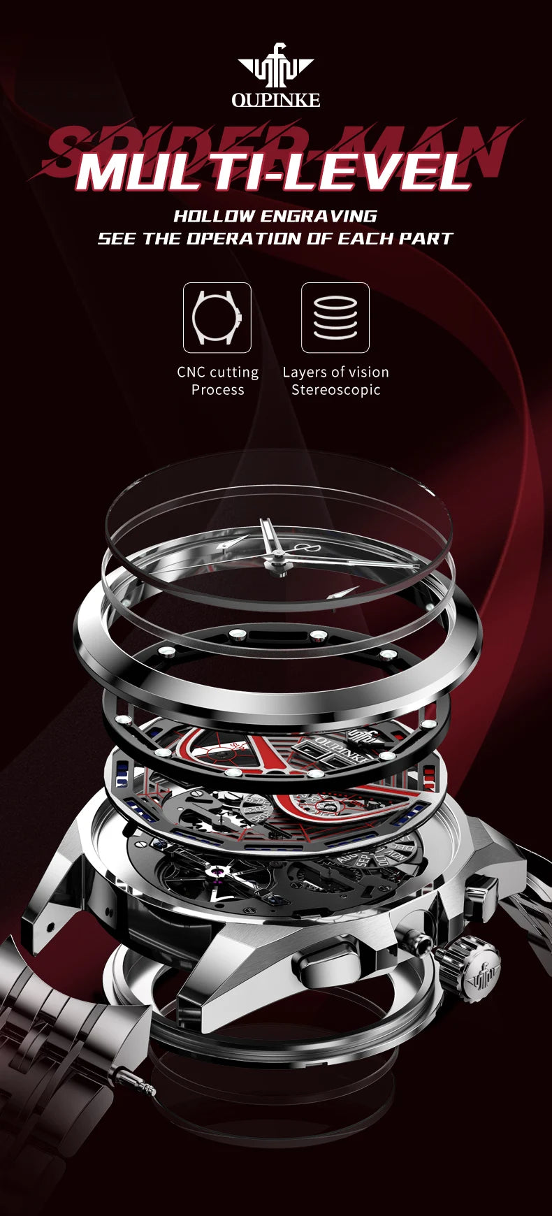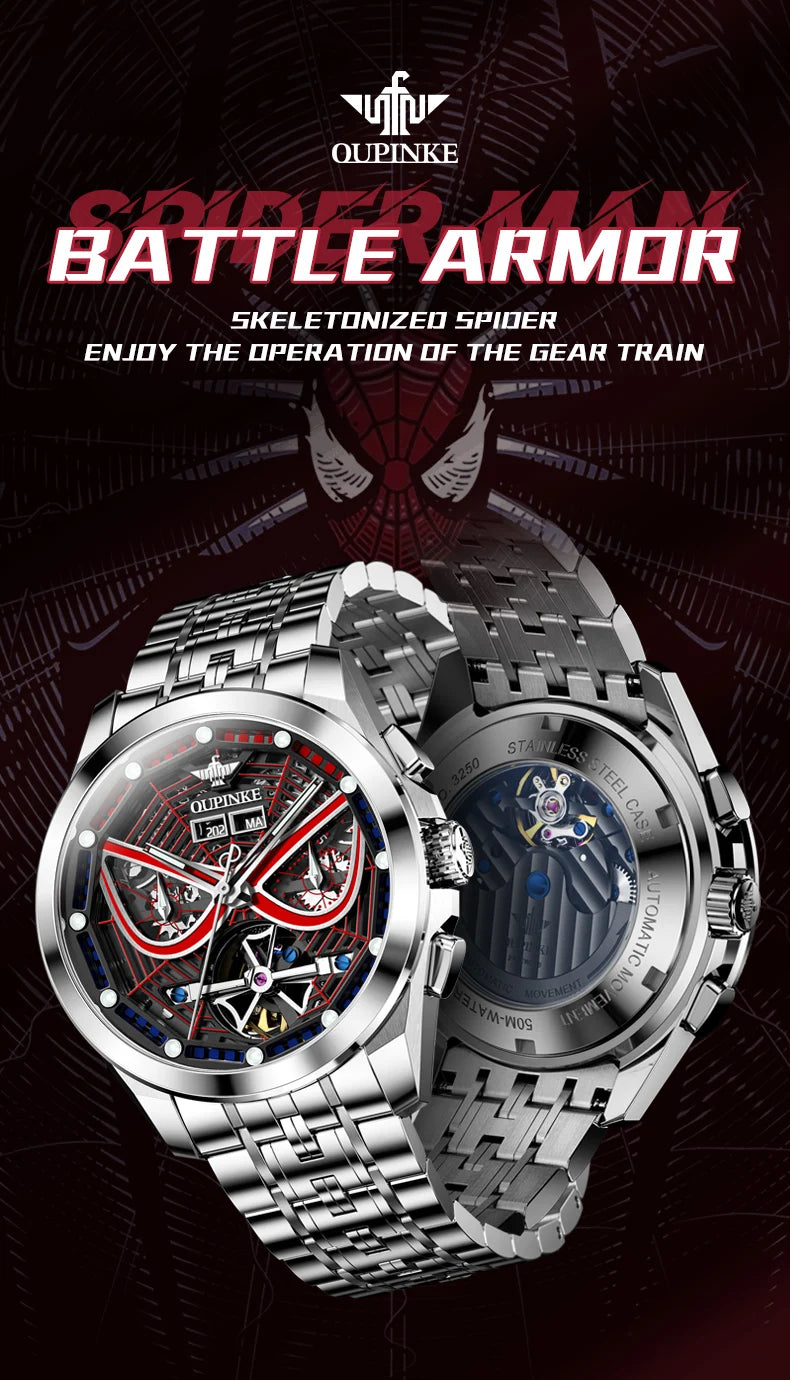 OUPINKE 3250 Original Men's Watch Deep Waterproof 3D Skeleton Stainless steel Automatic Mechanical Wristwatch Men Official Watch