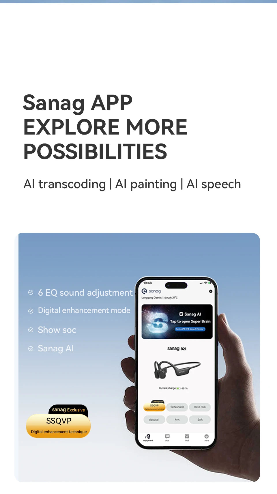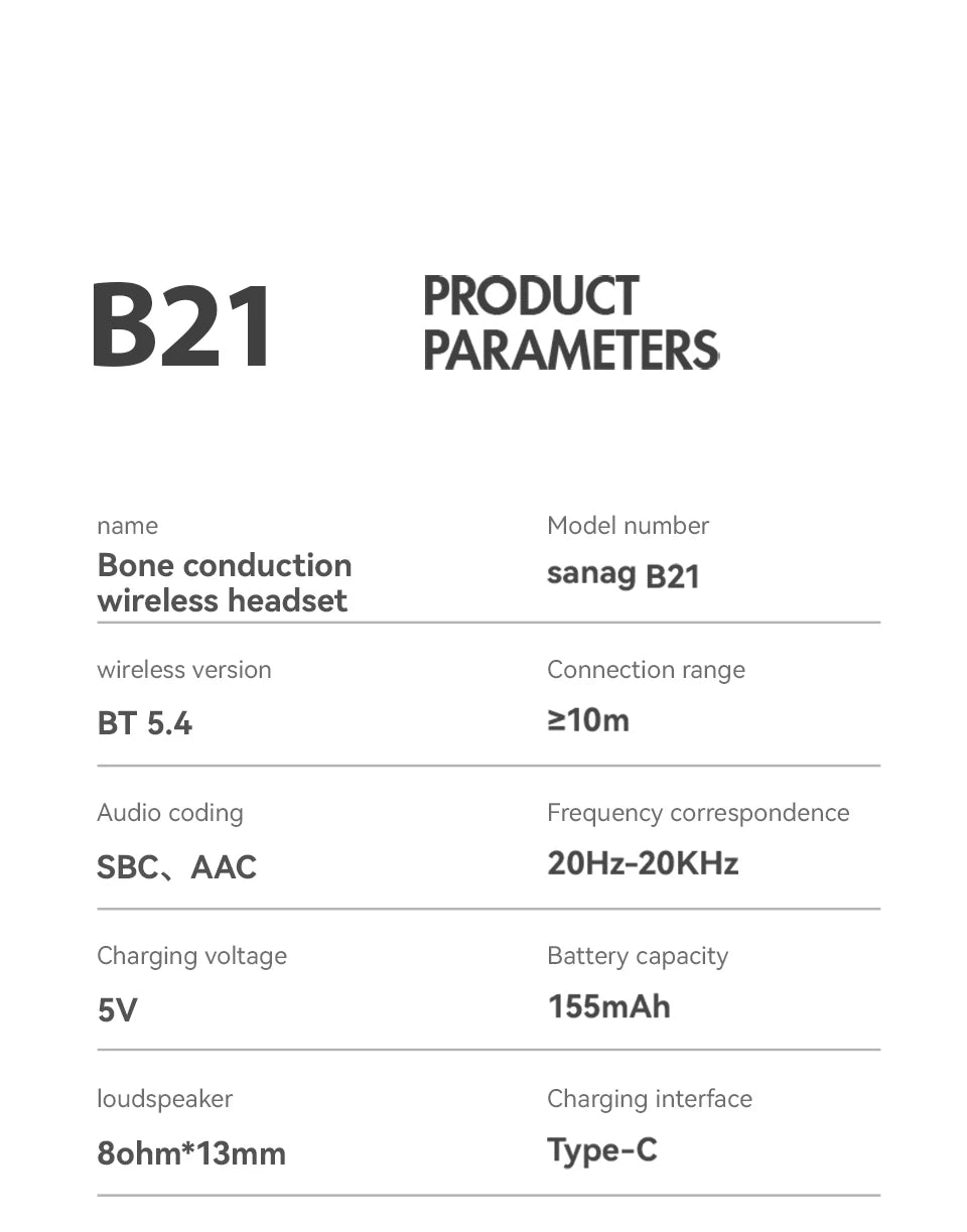Sanag B21S Bone Conduction Wireless Earphones Bluetooth 5.4 HiFi Bass Headphones IPX5 Waterproof Running Sports Earbuds