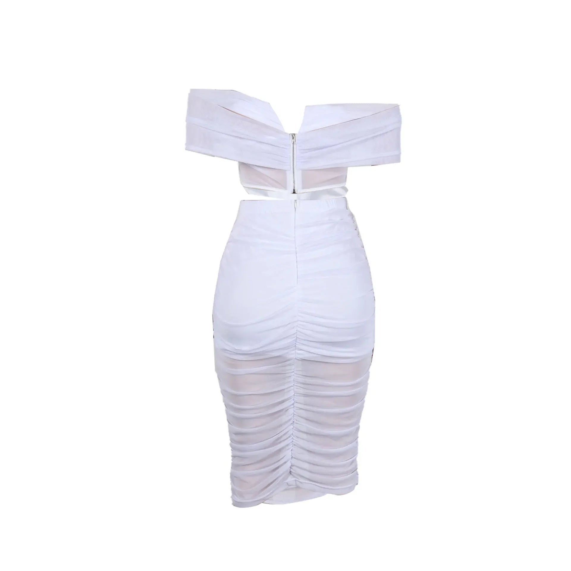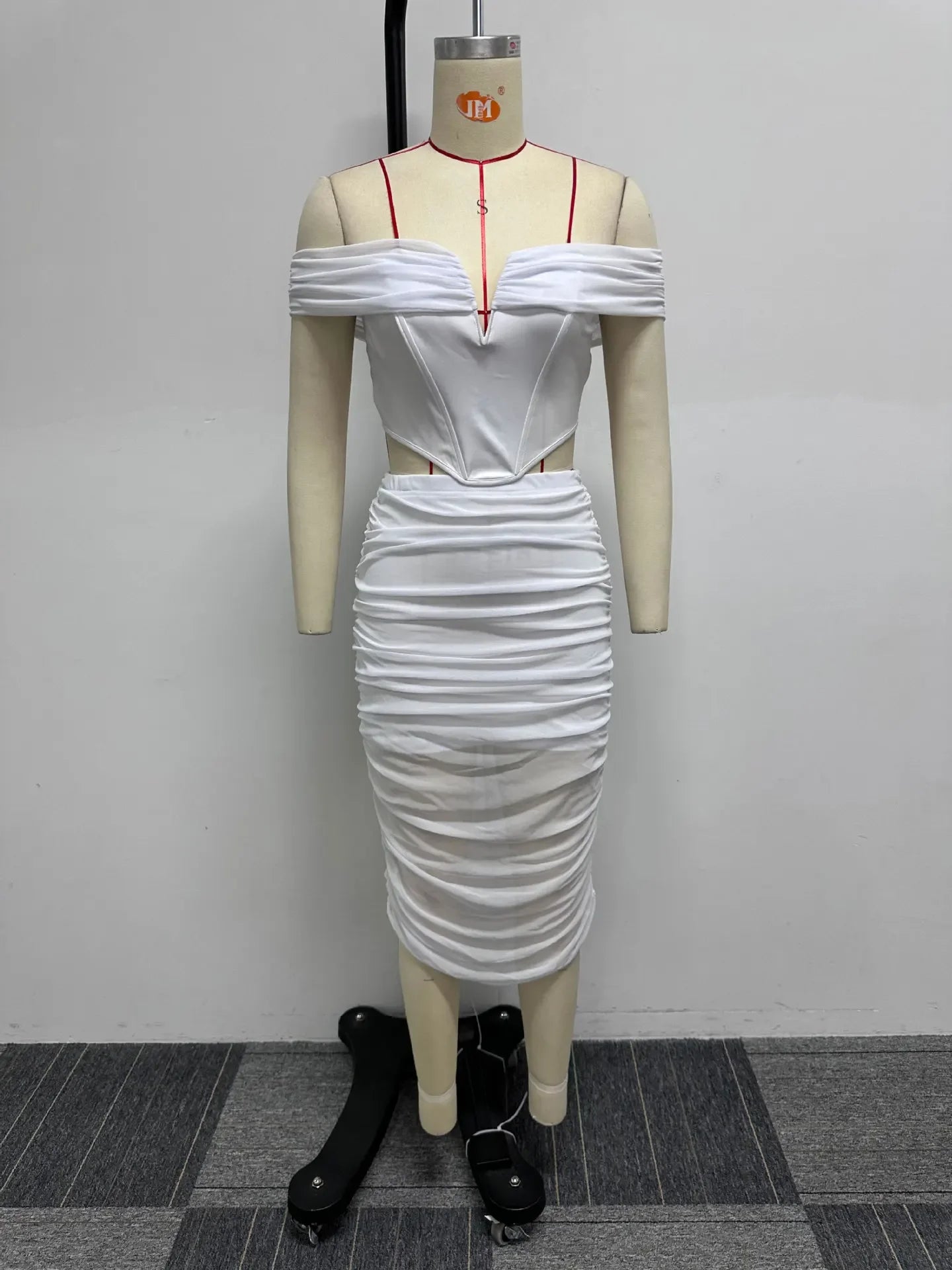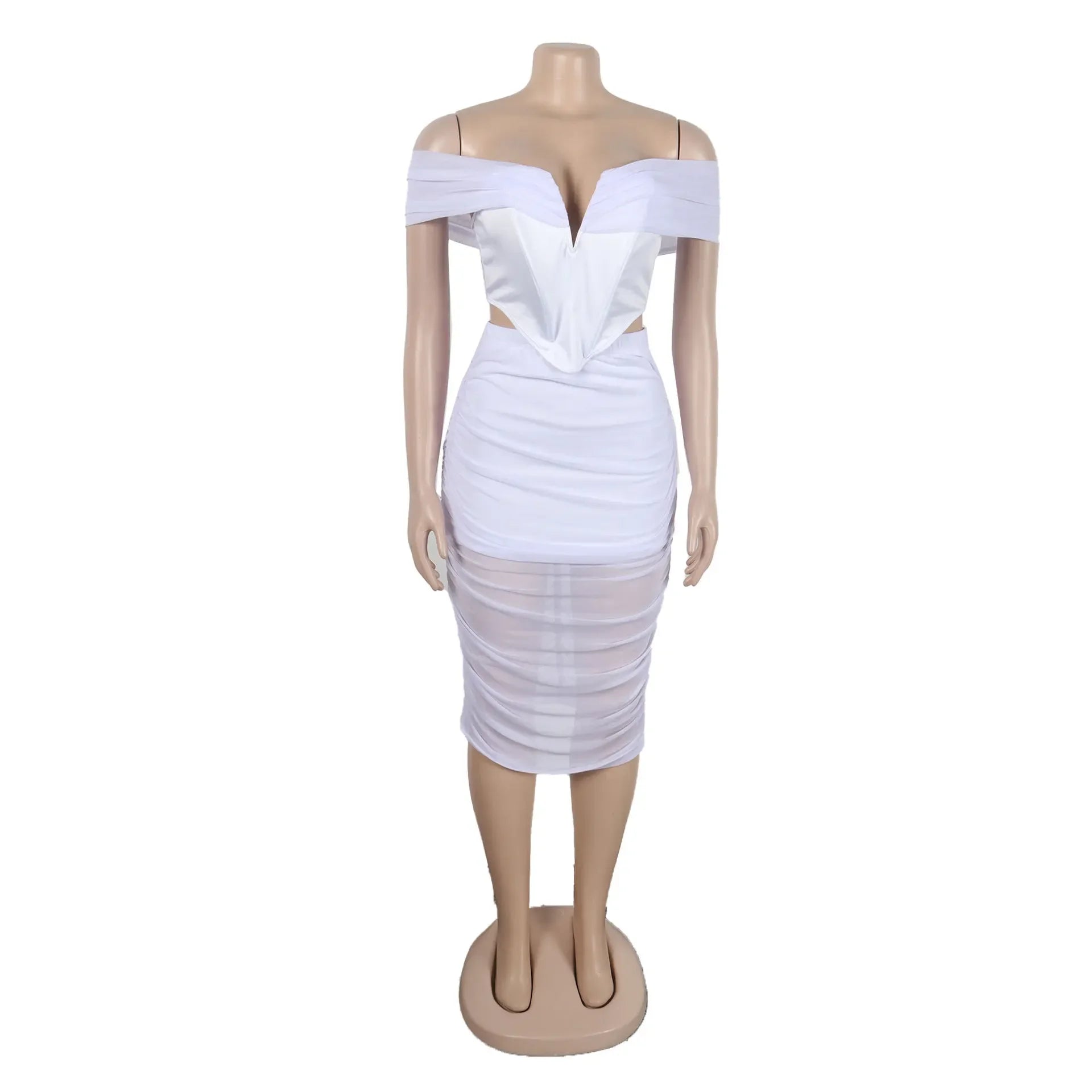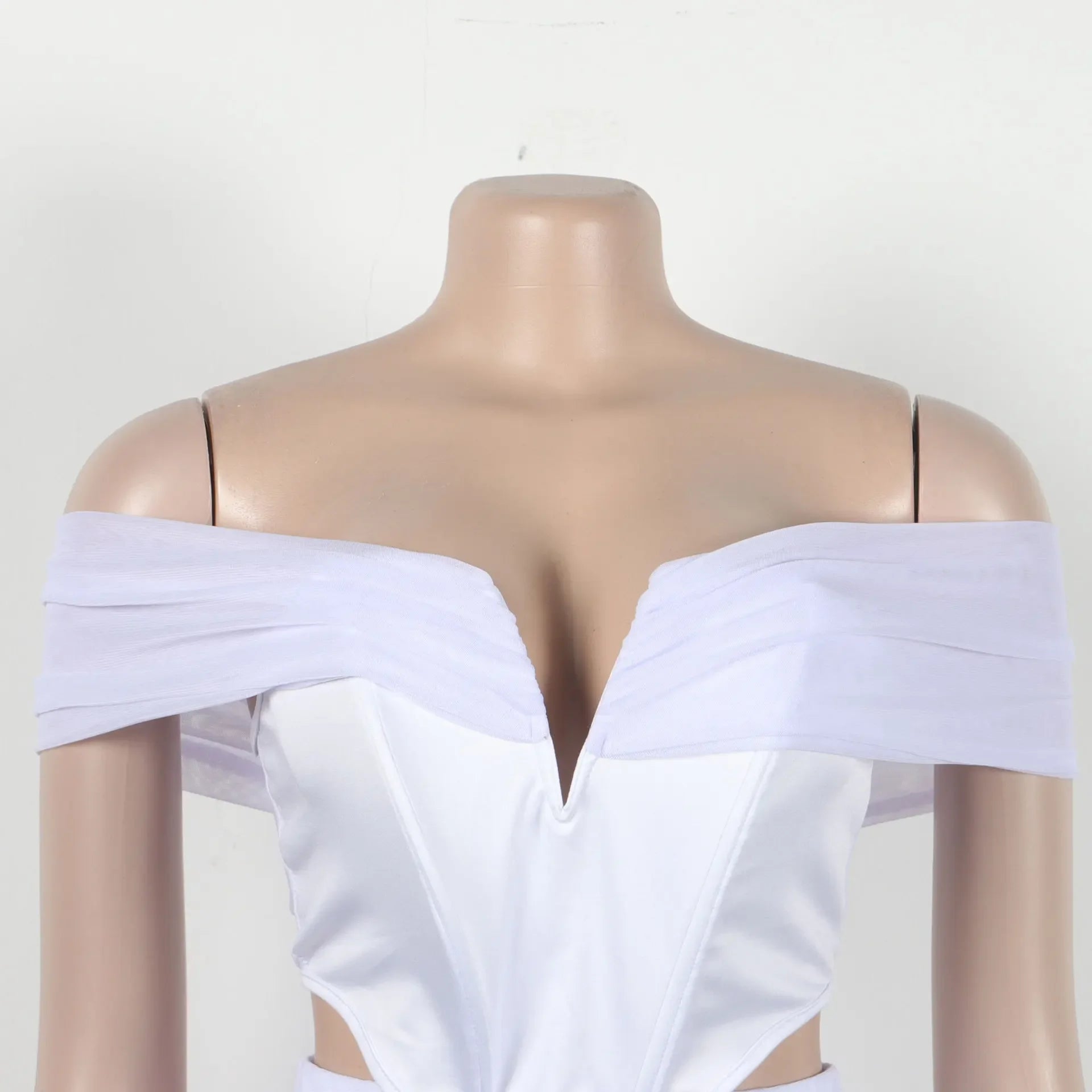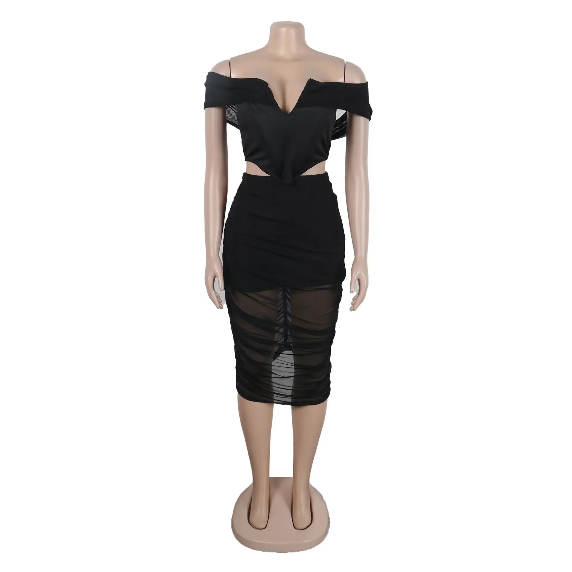 Slimming Mesh Splice Bum Covering Visibility Elastic Off-Shoulder 2-Piece Set European And American Style